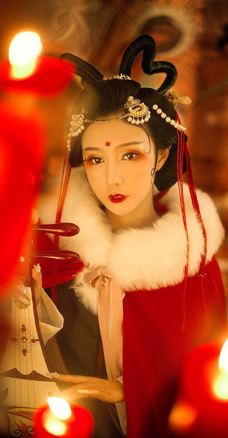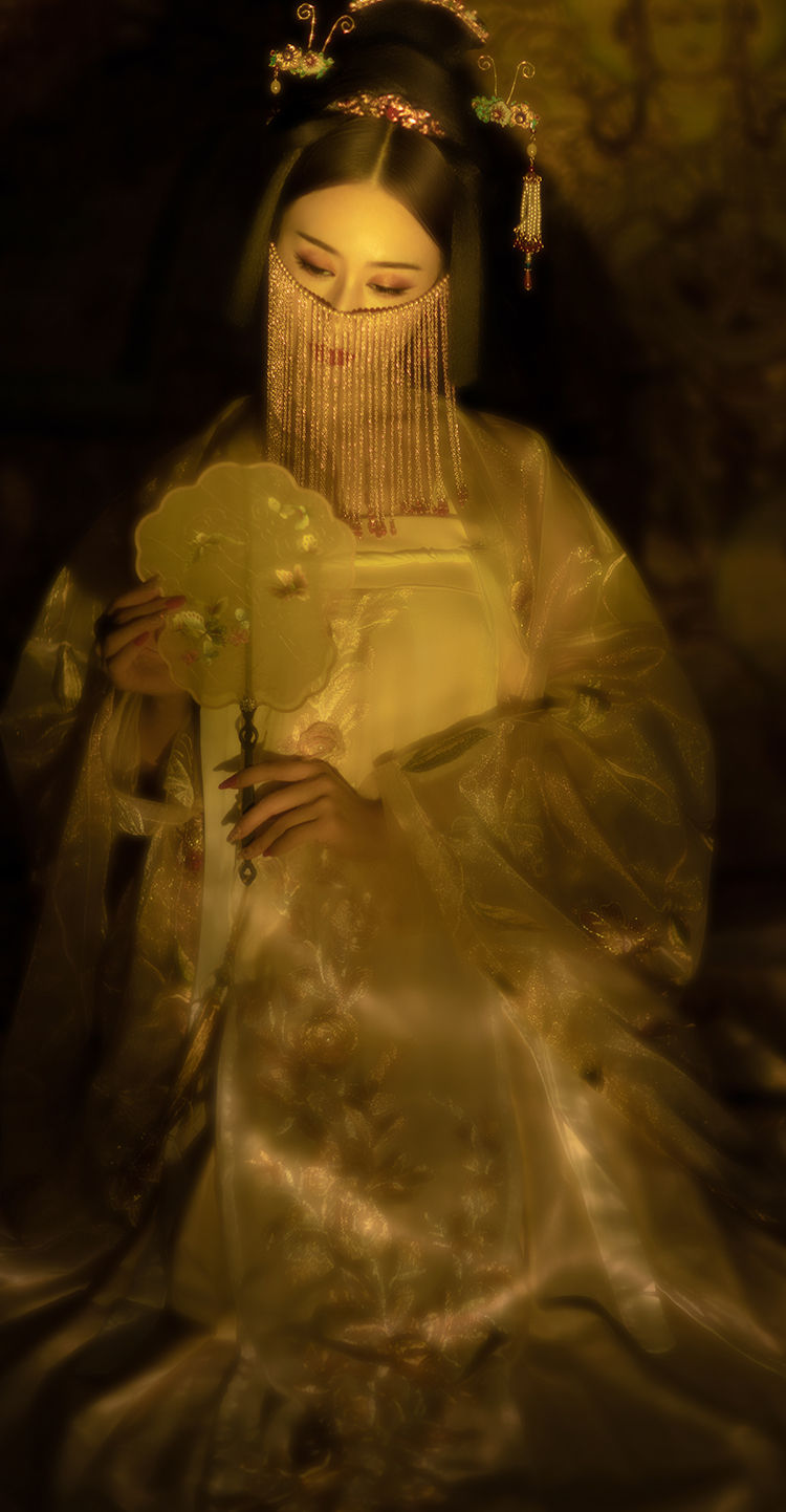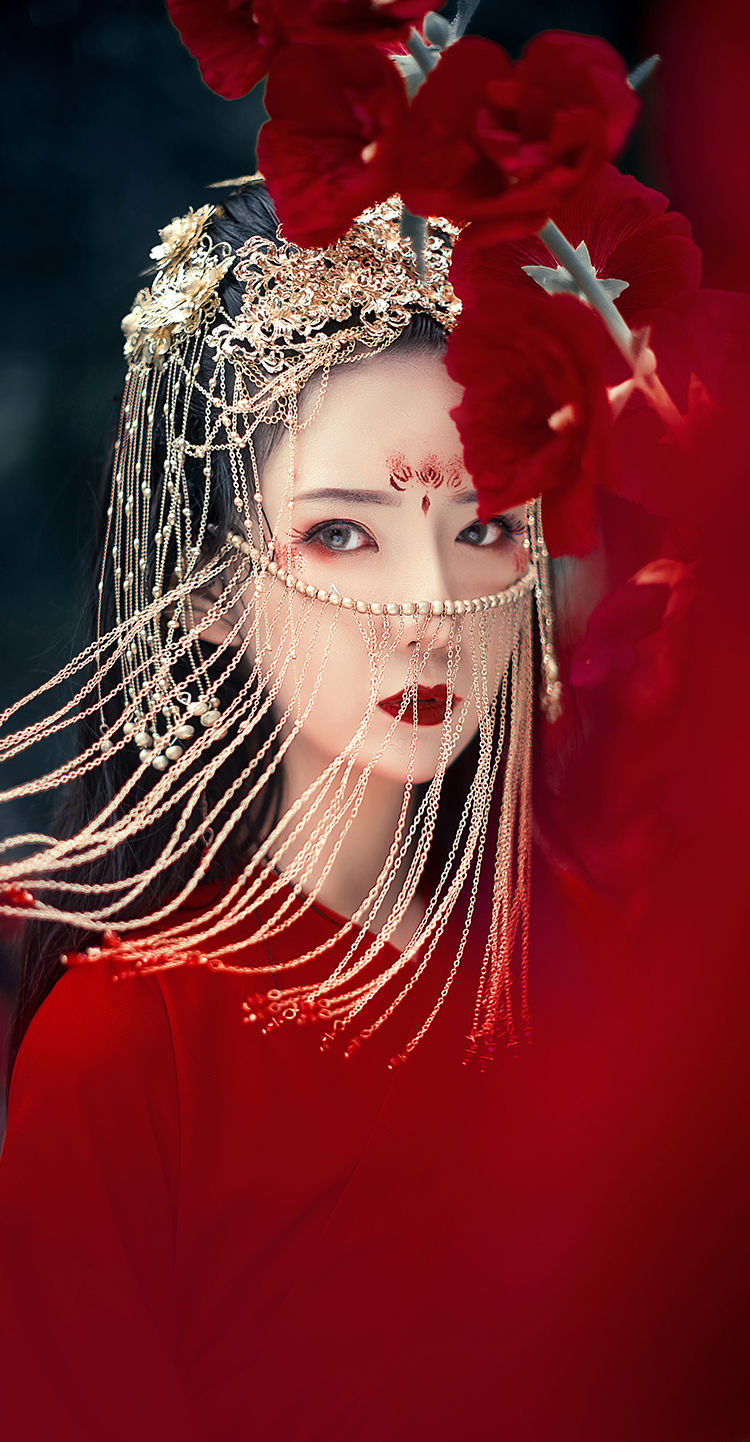 眼里浮现你送我的月半弯。遥看落花不解意,做了谁的画中仙